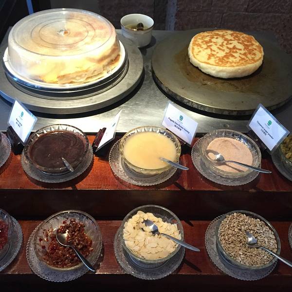 【印象】悦榕庄是丽江最有特色的度假酒店,酒店整体设计都带有浓浓的中式园林山水风情。明月西餐厅开在悦榕庄酒店的一楼,餐厅主要供应早餐、午餐和晚餐。如果正餐不想在酒店吃,早餐来此餐厅用餐,还可以欣赏玉龙雪山的美景。 【环境】餐厅的装修设计融合了丽江的山、水、小桥、流水、人家,非常有情调。餐厅分为室内或者室外,如果不怕冷,或者有阳光的早上在户外是非常有氛围的,餐桌旁边的杨柳,丽江的灯具,以及湖里的鱼儿,加上美味的食物。【时间】度假酒店的用餐时间都非常的长,从早晨6点半到10点半,完全可以睡到自然醒再来享用早餐。而且如果是赶早晨的飞机,餐厅还可以提供打包服务。果汁也是鲜榨的,悦榕庄的品质真的好的没话说,西瓜汁、橙汁、奇异果汁都非常的浓郁。Tips: 1、交通:不在丽江古城,位于束河古城的一处僻静的地方,离束河古城10分钟的距离,打车比较方便,酒店有免费的停车场。 2、wifi:餐厅可以连接酒店免费的wifi。 3、人均:早餐如果不含在房费里面,一个人是需要100多一位。