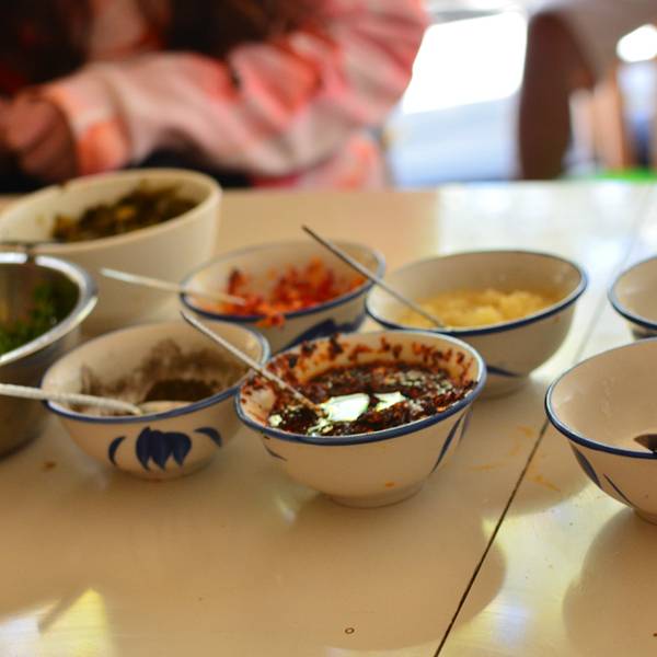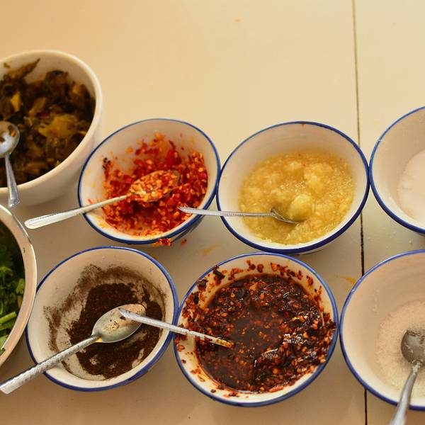 - 正值午后,我们还没来得及用餐,在冰的推荐下,我们选择了本地的一家特色土鸡米线店。