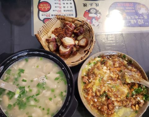 口味不错,店面也干净,有一股浓浓的怀旧味道,点了份双人套餐,结果又又又又吃多了,肥肠处理的很干净吃着爽口,要是配点泡菜就更好了