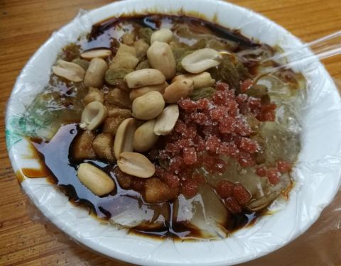 糍粑冰粉的红糖很好,但有点腻,斜对面还有著名的九妹凤爪,推荐去尝尝蒜泥味