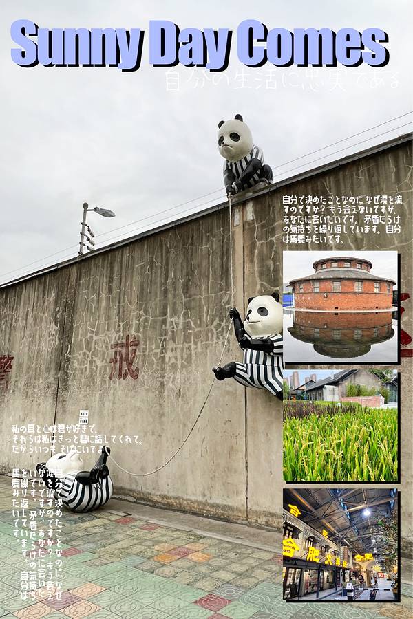 合柴1972是国内首个由监狱旧址改造的艺术园区,红色砖墙与周围林立的高楼形成鲜明对比。在快到大门口时,几只越狱的“熊猫囚犯”创意造型就很懵萌。