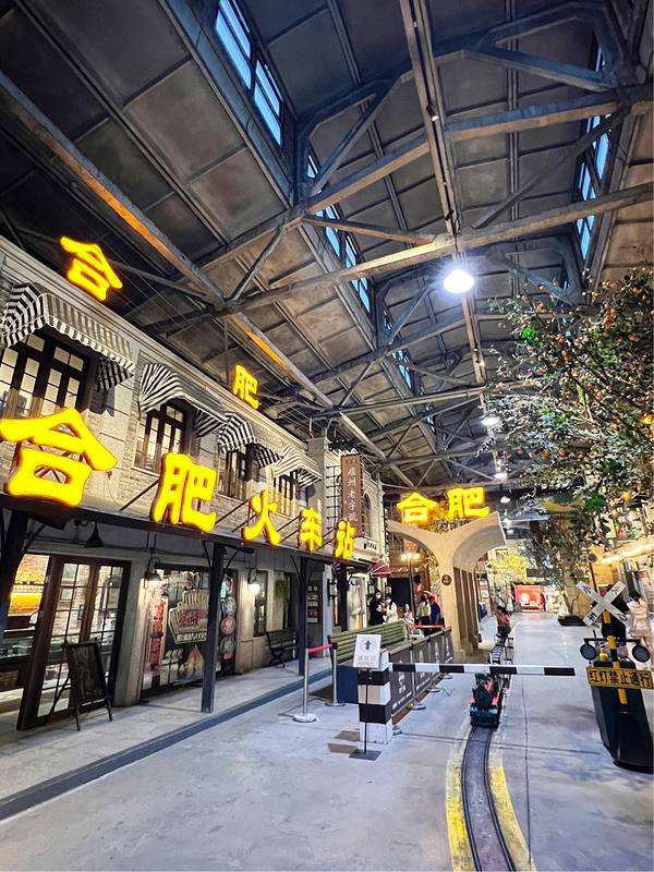 街区内有不少值得逛逛或打卡的地方,如“合肥家电故事馆”,一个有故事的地方,一个可以穿越到老合肥,甚至是穿越到民国时期场景的地方。现场所有布置的都是上个世纪的老物件,遥远年代里的场景,一个小型合肥火车站,复古小火车可以沿着地上的轨道行驶,坐在这个火车上,简直穿越在时光中。整个场景真的随时一拍就是网红复古大片,怪不得那么多人再次拍照。