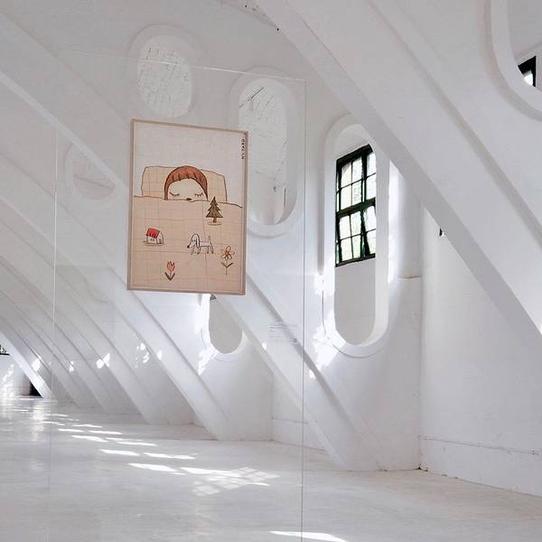 “合柴时光”也是街区内最网红的打卡地之一,那个最不容错过的莫过于这个必拍照的圆形屋子,因为前面是水,有倒影,挺好看,所以很多人拍照。屋子内是三介文创空间,纯白的空间,个性标语和漫画元素充斥其中,一进门就像穿越异时空。
