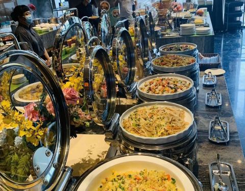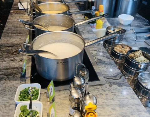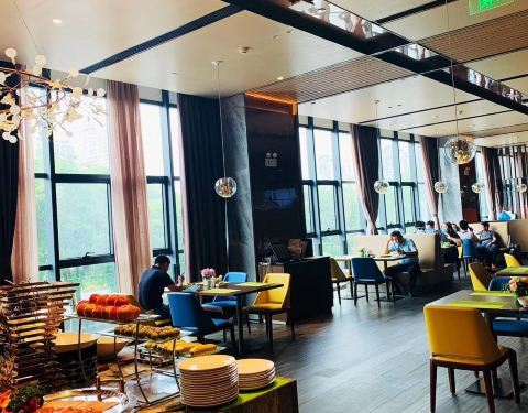 特别喜欢广州花都希尔顿欢朋酒店的这个二楼西餐厅,酒店住宿包含早餐。餐厅不仅设计装饰十分高大上,所选木饰面的台面,天花,墙面和柜面都透着西餐厅特有的情调。 早餐品种十分丰富,水果,点心,主食等色香味俱佳,推荐。