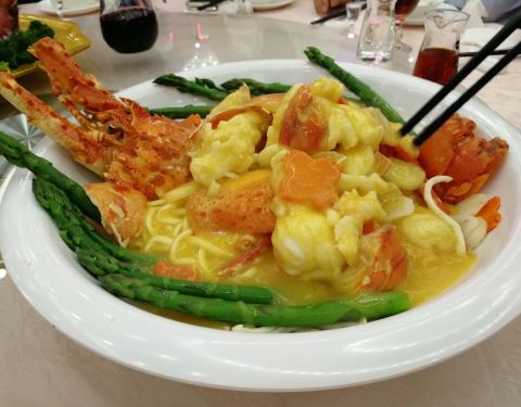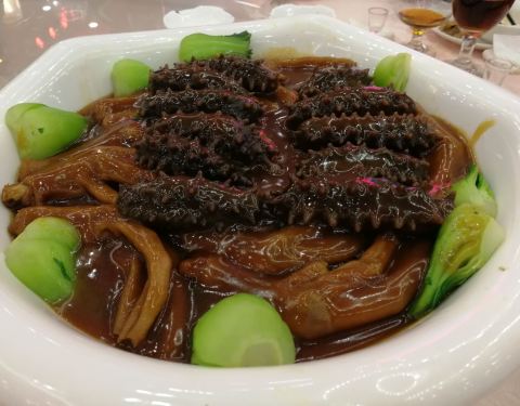 鹅掌扣辽参,鹅掌焖得很软,很入味,但海参就不够入味。 其它的菜色炒饭,炒粉丝等等味道都算不错的