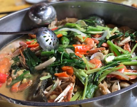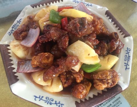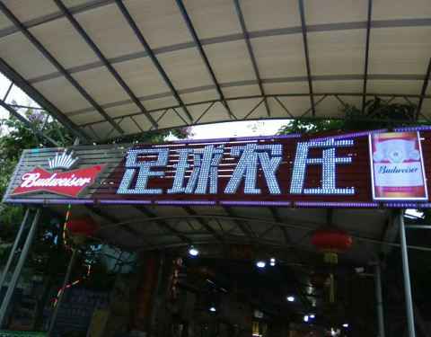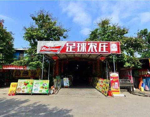 在足球场的边上而得名,是周边农庄中相对人气较旺的。烧鸡皮脆,但是肉比较柴;豆腐嫩滑,酸菜有点甜;赖尿虾很新鲜,炸的也很脆,关键还挺便宜;油盐饭是特色,很香,甚至比煲仔饭更有吃头;莲藕焖烧肉无功无过;马拉糕超好吃,很Q,吃饭分享朋友圈可得,建议大家都动动手指头;菠萝生炒骨不推荐,肉都是炸了很久了;