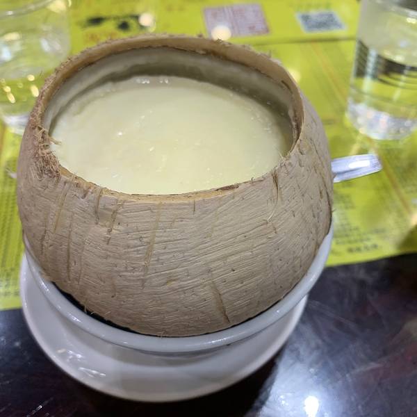 【椰子炖奶】很小的椰青,但非常香,奶里面浓浓的椰香味,不腻,很清爽,很搭,很好吃,椰青肉还可以刮来吃