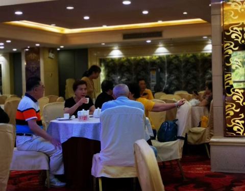 晚餐,我们吃了佛山必不可少的美食 海鲜。 饭店有着传统的喜气洋洋的奢华,超大包间,豪华大厅,是适合婚宴嫁娶的地方。