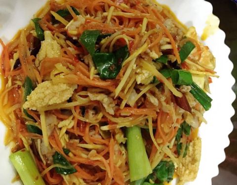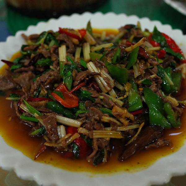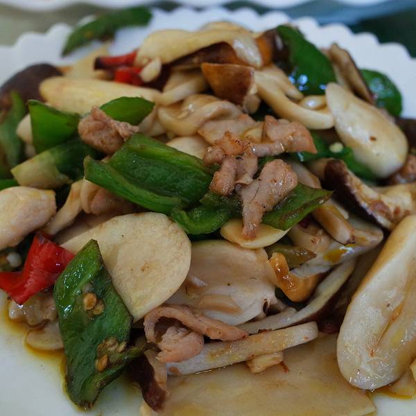 作为一个吃货,可以不做行程,但必须能找到好吃的馆子。到了和顺后的第一件事,当然就是吃。顺便说一下,我在腾冲的5天,所有中饭和晚饭都是在同一家饭馆吃的,相信不用过多的语言描述,足以表达我对这家饭馆的喜爱程度。她就是“胖姐拿手菜”!餐馆不大,只有4、5张桌子,除了拿手菜,还会根据季节调整当季菜。餐馆对面是一家服装店,门口有一只很有个性的鹦鹉。餐馆老板胖姐就是大厨,所有菜都是她亲手烹制而成,相信我,绝对每一款都好吃。每顿饭我和老公会点3-4个菜,人均50-60。 腾冲菜的口味是酸辣,食材很新鲜,并没有太多菌类。