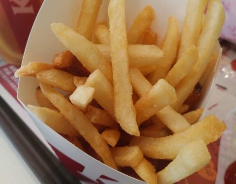 炎热的天气来杯冰爽的伴柠伴桔鲜果茶再配上酥脆的薯条简直爽翻天了!