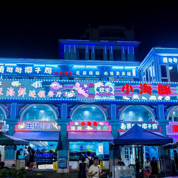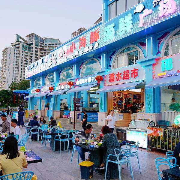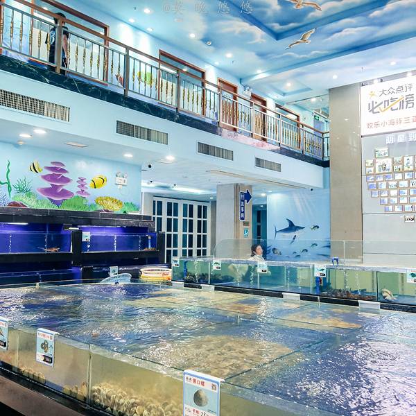 在三亚永恒的主题就是吃海鲜啦,三亚湾最引人瞩目的海鲜餐厅就是小海豚啦,一整栋都是蓝色的,还画满墙绘,好像海底世界一样,我们就这样被吸引过来了。走到里面就是海鲜池,这里罗列着各式各样的海鲜~可以在这里...