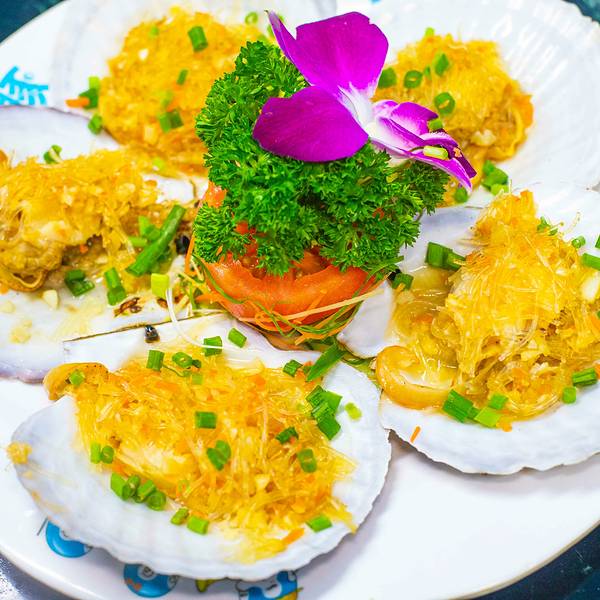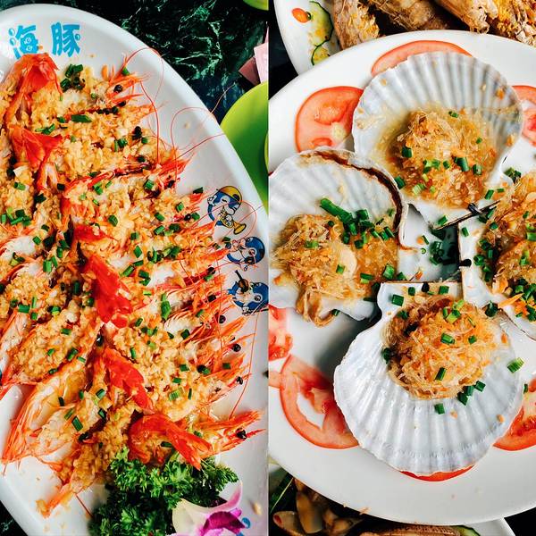 在三亚永恒的主题就是吃海鲜啦,三亚湾最引人瞩目的海鲜餐厅就是小海豚啦,一整栋都是蓝色的,还画满墙绘,好像海底世界一样,我们就这样被吸引过来了。走到里面就是海鲜池,这里罗列着各式各样的海鲜~可以在这里挑选,然后购买~店里工作人员都会很贴心帮忙捞起来的~我们买了皮皮虾,生蚝,扇贝,花螺好几样~买完称重后就可以告诉店员具体的海鲜做法,如果不知道怎么煮比较好吃,也可以听他们的推荐~在这里就餐可以选择坐室内或是室外,我们看到外面还有歌手驻唱,果然就选择了坐外面~两个歌手都唱得非常好听,一开始我还以为是放了唱片~蒜蓉生蚝,饱满的生蚝肉里有着蒜蓉的香气,味道好极了。芒果螺,清洗得很干净,一颗沙子都没有,做法选择了辣炒,所以比起单纯姜葱炒要更加入味好吃。皮皮虾的做法永远都选择椒盐,椒到壳都是脆的,很好剥,里面的肉是既鲜又入味;每一只都好吃到让人沉醉!而且每一个都超大只,里面的肉非常厚实~粉丝蒸扇贝,我们都很喜欢吃,而且扇贝的个头非常大,里面的肉十分Q弹。花螺,鲜甜Q弹,超级美味~另外我们还点了店里的特色菜,豆腐煲,吃起来口滑嫩入味~吃完之后我们还在店里逛了很久,因为这里的墙绘真的好好看,各式各样,真的有一种在海底世界就餐的感觉~也很适合拍照哦~ 店名:小海豚连锁海鲜 位置:三亚湾路88号小海豚海鲜广场