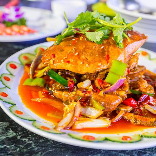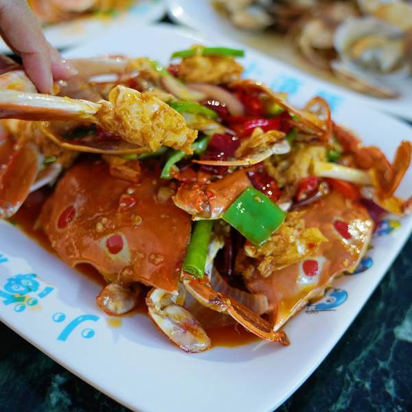 tips: 地址:三亚湾路与金鸡岭路交叉口三亚湾路88号 人均:150元/人左右 到三亚的第一顿肯定是海鲜啦,小海豚就在三亚湾的海边上,过马路就是大海,离椰梦长廊很近,可以逛完在椰梦长廊看完日落后来这里大快朵颐一番。海鲜一定要新鲜啦,现在三亚吃海鲜的模式,大多都是在海鲜市场旁边,大家在市场挑选了海鲜马上就去旁边的各个加工店加工海鲜然后开始享受美食,而小海豚比较特别,是自家的海鲜,面积很大,也算是一个小小的海鲜市场,价格也是非常实在的。面包蟹是一定必点的,也是他们家的招牌,秋季的蟹真的非常美味,蟹黄很饱满紧实,入口超级香。他家做川味很正宗,辣味很足,是我在三亚吃到的川味非常正宗的之一。虾一直是我吃海鲜的必点菜,虽然它很常见稍显普通,但它的口感、味道,性价比都是非常高的,而且新鲜的大虾真的超级超级好吃。圣子王,也是我非常喜欢的海鲜之一,三亚的圣子王的个头都比较大,而且很新鲜,是内地吃到的圣子王完全比不了的,很有嚼劲,辣炒很入味,辣味和鲜味完美融合在一起,超美味。鱼也是不能错过的哟,看看这个鱼的颜色是不是很鲜艳,鱼肉很嫩,没有小刺,新鲜先蒸,完好的保留了鱼的鲜味,入口即化,回味无穷。 最后再来上一碗紫菜丸子汤,鲜味十足,美味无比。