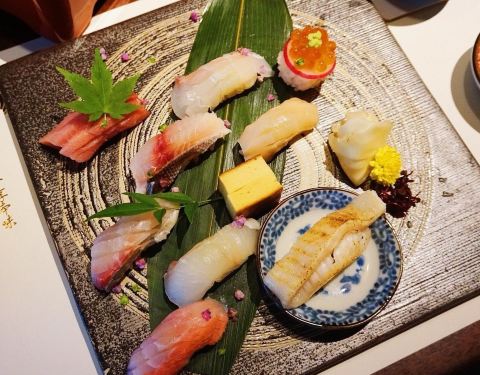 寿司十贯 虽然小姐姐认真介绍了每一款寿司,但是我还是记不住...白色的有竹荚鱼,比目鱼什么的,肉质大多不是那种入口即化的口感,深色的有金枪鱼等等,那种会油脂更丰富一些所以入口软嫩,总的来说深色的好吃一...