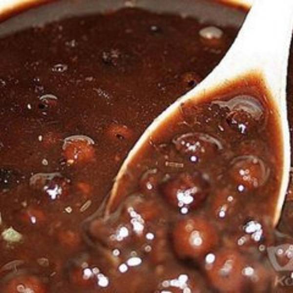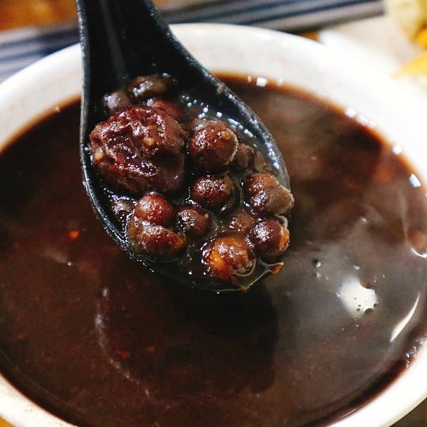 吃起来有点像是广东这边的红豆沙之类的口感,不过这里并没有磨成沙状,而是保持了豆子的形状,外面就是一些汤汁之类的,吃起来有点干苦,不过还是挺不错的口感挺有特色。