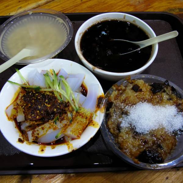 当地口味 下午茶 老字号 美食林风味 高担酿皮 甜胚子 牛肉馅饼 粽子 八宝醪糟 炒粉 茹记杏皮水 热晶糕 甜醅子 牛奶鸡蛋醪糟 甜醅 灰豆子