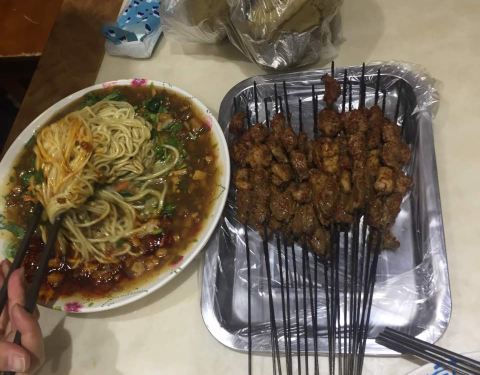 素凉面和臊子面的味道都很赞,烤羊肉的味道一般感觉肉也不是很好,
