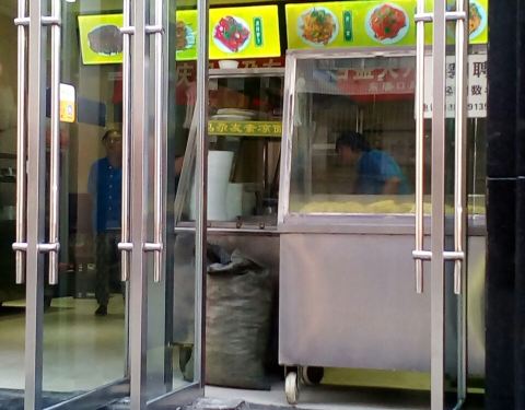 当地非常知名的一家主要经营凉拌面的连锁餐饮店,而且是素拌面,但是荤菜、烧烤肉类也有售卖,预制好...