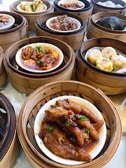 海鲜自助餐,这家自助餐可以不限量点,七七八八的吃的放了一桌子。比较便宜。 一屉虾饺四个做得还挺好吃的。蟹黄包没有蟹黄的味道。核桃包味道还行。 凤爪 长的酥软一嗦除骨头和肉就分离开来。榴莲酥很酥入口一大口榴莲味。