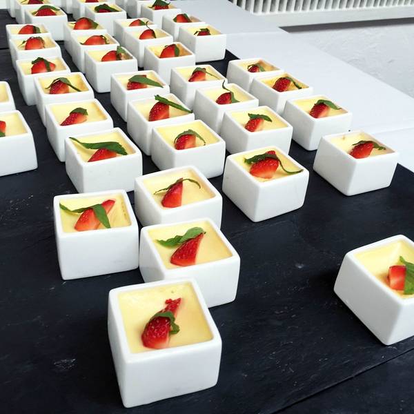 用方形的迷你小容易装,上面有草莓和叶子装饰