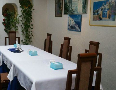 很安静的一家小店,位于使馆区内部,里面布置是希腊风格的,餐厅整体装饰都是蓝白色。灯光很到位,适合和两三个好友聚会,或者和爱人用餐。单点菜品的价格很贵,所以建议去吃中午的自助,你想吃的东西基本都能吃...很安静的一家小店,位于使馆区内部,里面布置是希腊风格的,餐厅整体装饰都是蓝白色。灯光很到位,适合和两三个好友聚会,或者和爱人用餐。单点菜品的价格很贵,所以建议去吃中午的自助,你想吃的东西基本都能吃到。自助部分一如既往的很精致,海鲜烧烤拼盘,有虾、鱼、鱿鱼圈。都非常的新鲜,尤其是虾,相当新鲜好吃。推荐烤羊腿, 一点都不膻, 保留了羊肉的新鲜清香。 三文鱼也不错, 肉质细腻。冷盘包括各种蔬菜沙拉,茄子卷、腌制的蘑菇拌菜、土豆培根沙拉。有个土豆泥很绵软,是热的,应该算配菜吧。汤是两种:龙虾汤、蔬菜汤,前者不错,但不要期待里面有龙虾喔,蔬菜汤看着比较寡淡,没尝试。甜品推荐提拉米苏,布丁不细腻。热饮有咖啡茶两个选择,咖啡配甜品不错。总的来说价格很实惠。服务员素质较高。
