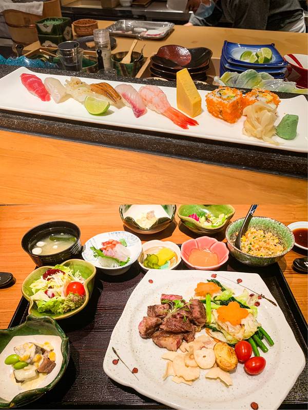 又是一家后悔没有早点发现的神仙日料店,有一个环境超好的日式庭院,强烈推荐小伙伴们尽早打卡。 趁着台风还没来,天气☁️🌞也挺好的。 这家日料位于华安保险大厦,从购物公园走过来大概也就十分钟不到,到了之后直接电梯上五楼。 🌁之前看图片感觉这家店和其他大部分精品日料店差不多,位置不会很大,但是到了之后还是小小的惊讶了一下,整个店估计至少有二三十个包间,还有板前的位置以及至少两个专门吃铁板的房间。因为没有预约就直接坐在板前的位置,可以看到师傅们制作的过程,也还不错。 选了一个寿司🍣的定食套餐和一个铁板牛肉🐂的定食套餐,寿司部分就是直接在面前制作,这边是把所有的寿司全部制作好之后直接呈上,没有做一个吃一个的那种仪式感,食材新鲜,味道尚可。牛肉选了五成熟,上来之后感觉稍微有一点点烤过了,不过味道也很不错肉肯定是好肉。 其他的小食部分也都还不错,符合这个级别餐厅的水准,餐后还有咖啡☕️/茶🍵/水果🍉可以任选一份,非常不错。 ❗️当初十分吸引我的那个庭院确实非常不错,围着庭院🍃有7个包间,中午没有最底消费,只要提前预定就好,很后悔没有提前预定,包间可以直接看到挺远的景观🌃,仿佛回到京都⛩一样,可以放慢脚步。不过庭院周围的房间到了晚上就会有低消,根据房间的大小分别是2000、3000、5000。 除了庭院周围的房间,还有很多各种各样的座位,包括榻榻米的,小隔间,小包房各种都有。 要想座这些位置最好还是提前预定,周末的中午人还是很多的,可能来了就没有位置了。 这家店除了这种寿司、刺身、寿喜锅、铁板都有,基本上想吃的日料在这家都能吃到,中午的定食套餐选择也很多,价格从100左右到两三百都有,在繁忙的工作日来此享受片刻的宁静🏝,性价比还是很高的。 店名⚡️:岚山庭 营业时间⌚️:11:30-14:30,17:30-22:30 地址🏠:福华一路华安保险大厦5楼 Tips🌈:便装即可,建议预约。