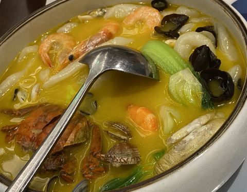 江南盛宴是上海长兴岛上口碑最好的一家餐厅了,餐厅的规模还挺大的,环境装饰的也不错,用餐区域的环境很干净整洁,有种江南古色故乡的风格。在这里吃饭可以买套餐,也可以点餐,但一定要提前预约,因为来这里吃饭的人很多。点菜区域的菜单是看墙面上的图片,数量太多了。来长兴岛玩,当地的特色就是羊肉,白切鸡,虾,鱼之类的,每道菜的量都非常大,味道也还不错,人均消费也不贵。