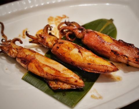 油焗小管,一整只小管,油焗得油光发亮,一看就很有食欲