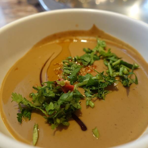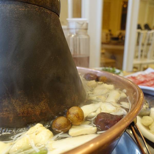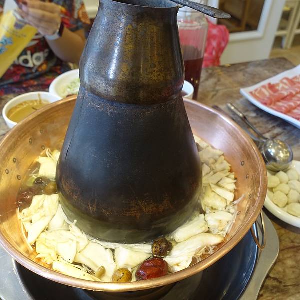 - 肉很新鲜,铜锅滚起来,夹上一片肉,稍微烫烫就能吃了,蘸上麻酱,味道那叫一个美