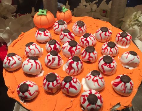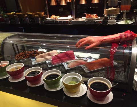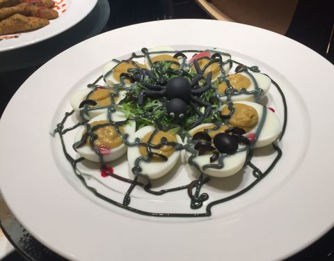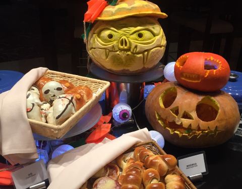 正赶上万圣节,那就应个景儿,来一层吃个万圣节自助餐。一进门口就吓了一跳,站着一个鬼怪还会动,鬼哭狼嚎的气氛衬托的不错。吃的食物都很新鲜,骷髅,蜘蛛、血淋淋的。餐厅服务员都很勤快,态度和蔼。餐厅经理不得不给赞,又会说话又亲切,还拿了调酒送我们。一看就有经验,老江湖,精明能干。万圣节体验不错,下次还和朋友一起住在这里。