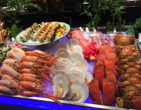 菜肴口感很好,种类很多,甜品不错,海鲜新鲜服务员帮忙可以加热,服务很周到热情,盘子收的及时,不会落满