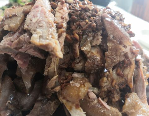 知道它是因为之前改革开放40周年上电视了,我屋里的电视没关开着又是新闻频道滚动播放。。。这个位置其实我路过n次了,不是专门来这块地理位置绝对是找不到的。十一点四十到已经需要排队了,拼桌不可避免,两个人几样招牌菜。蒜泥肘子,这个相当不错,和我家里做的挺像的味道,从小吃到大的感觉。