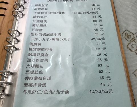而悦宾的锅烧鸭更像是烧鸭,但不管怎么说,确实挺入味的,咸度也控制的不错。看看这菜单,很有年代感