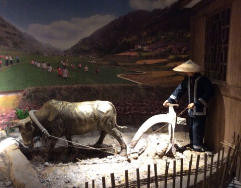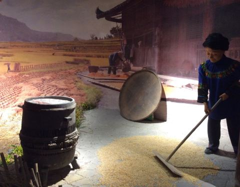 重庆黔江民俗馆之生活篇:黔江地区属于典型的亚热带湿润季风气候,四季分明,适合多种植物生长,自然资源和农产品资源非常丰富。在饮食上,混居的土家族苗族基本相似,好豪饮,喜食辛辣偏酸食物,主食以大米为主,食物多以腌制、熏烤保存。