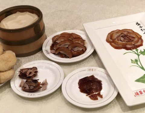 全聚德烤鸭店堪称享誉全球的中华老字号,独一无二的北京城名片。很多老外都慕名而来,前来品尝。烤鸭技艺传承百年,选料精、火候巧、配料足,味道自然好——鸭皮酥脆,鸭肉鲜嫩,鸭心、鸭肝、鸭掌等做的菜也都可圈可点。这里的烤鸭是有鸭证的,装在信封里,并且有编号,无处不体现全而无缺,聚而不散,仁德至上的美食理念。 玉泉路店门面很显眼,是古色古香的感觉,走进去,店内干净舒适,服务周到,让人有宾至如归的感觉。就餐客人很多,大厅无法提前预定,最好早点去。包房舒适、随意,可单点,人数多也可点套餐。