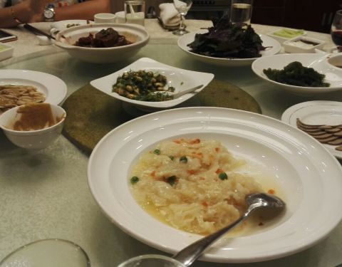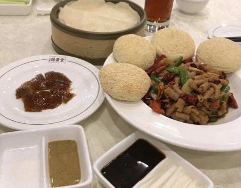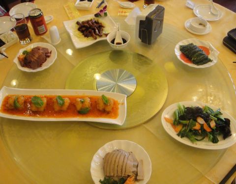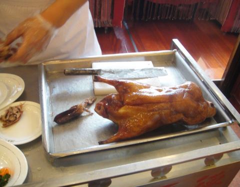 带孩子去北京,一定是要去吃北京全聚德烤鸭的,坐在大厅吃的,点了烤鸭,还点了一些其它菜,烤鸭口味那是绝对的,现场由厨师片烤鸭,厨师手法都很专业,快捷,几种部位,不同吃法,赞。