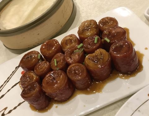 服务好 点菜是个女生 一听说话 就让人喜欢 干事特别麻利 点了个200多的烤鸭 很快就上来了 因为都是循环烤 服务员先上了几片鸭皮 入口即化 每个部位的肉都是分开上的 很细致 清椒鸭肠 几乎没有辣味 鸭肠做的很嫩 很好嚼 脆脆的 蒜蓉娃娃菜 是上锅蒸的 我口重 这菜味er淡 九转大肠 服务生说要五十分钟 我先生好er这口 就点了 没半个小时就上来了 很快 我从来不吃下水 肝脏 所以一口没吃 但菜上来了闻着味道还可以 酸甜口 甜偏重 鸭架子做的椒盐 加工费15 味道可以 量分少点 可能一只分两桌