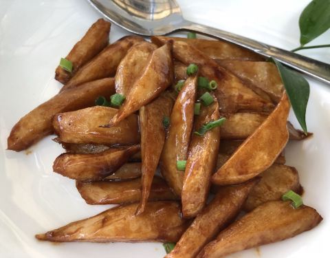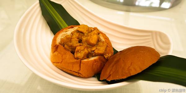 这家店的招牌菜之一,味道确实很不错,也很有创意,特别是用紫苏叶包上以后吃味道会更加丰富。咖喱面包鸡