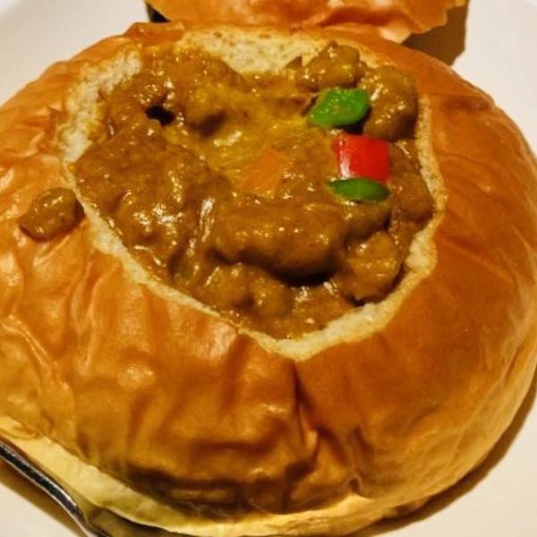 这道菜挺好吃的,给我的印象深刻了,可能偏甜口的让我比较喜欢,面包的口感,绵软好吃份量真大 面里面的鸡块给的也很多啦 咖喱很香味道也很正 配上面包算是一道半主食...?fusion水煮鱼