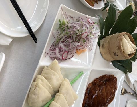 - ...是北京城最好吃的烤鸭之一,色亮皮酥肉嫩多汁,四种酱料口感丰富,饼皮很好折成一小点展开也好不费劲