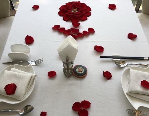 服务非常好,闺蜜聚会首选。我看见旁边桌子上洒了玫瑰花,问起来领班说是因为客人过生日,我就随口说了一句。啊,我们俩人过生日呢!然后后来就默默送了我们两碗长寿面,一根儿吃到底的那种,还有一个仙气四溢的...服务非常好,闺蜜聚会首选。我看见旁边桌子上洒了玫瑰花,问起来领班说是因为客人过生日,我就随口说了一句。啊,我们俩人过生日呢!然后后来就默默送了我们两碗长寿面,一根儿吃到底的那种,还有一个仙气四溢的大寿桃,在我点的一颗红心甜点上又增加了俩核桃蛋糕,还写上了“岁岁常相见”。 马上被这服务圈粉。 环境不用说了,宽敞,安静,门口还有代客泊车服务,简直不要再得人欢心。 着重表演一下水煮鱼。看上去像清蒸的,味道极其丰厚,赞其精妙。