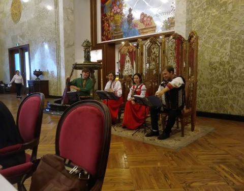 【环境】很不错,用餐时有现场小提琴和手风琴演奏,很有情调,最喜欢大大的穹顶,很莫风。 【服务】周到