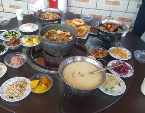 玩完龙庆峡,直奔64号院,现在这个豆腐宴各个院,已经有了一个大的免费停车场,有卫生间。 64号院被点评率较高,2人100,4人以上每人35,豆腐是可以,各种炖,鸡肉、猪蹄、肚、鱼各种农家菜,每样吃点,两人绝对吃饱,因为顾客多,比较乱,也就是吃个新鲜吧,建议玩完长城、龙庆峡或到了延庆,还是首选豆腐宴吧,性价比挺高。 老板挺客气。