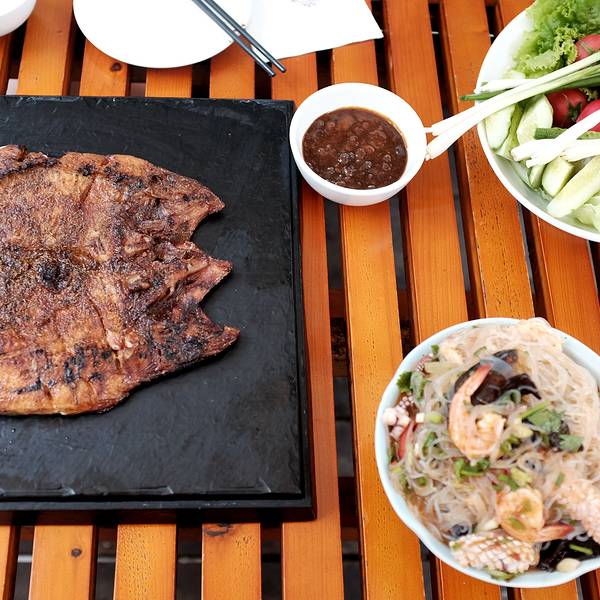 位于怀柔雁西不夜谷的一家泰莲庭烤鱼,装修风格偏西餐风格,有炸鸡薯条什么的,饭点基本都要排队,另外他家还可以住宿的房间。 要的金尊,一条辣的一条原味的,别看这里偏西餐化,但是烤鱼的味道和火候依旧掌握的很好,鱼肉很嫩很入味。价格略高,不过在这景点周边也算可以接受。