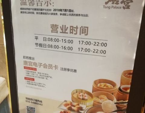 我和家人游览奥林匹克公园之后,晚餐来到“唐宫海鲜舫”(西藏大厦店)。 之前,我到过他家的(民族店),菜品制作精美,口味尚可,印象不错。因为是朋友请客,对性价比没有感触,也木写点评。 【环境】典型粤式...我和家人游览奥林匹克公园之后,晚餐来到“唐宫海鲜舫”(西藏大厦店)。 之前,我到过他家的(民族店),菜品制作精美,口味尚可,印象不错。因为是朋友请客,对性价比没有感触,也木写点评。 【环境】典型粤式餐厅风格,喜庆、典雅、干净、整洁。 【菜品】 [金牌乳鸽]雷区,这次吃的乳鸽,口感硬,干柴,我居然塞牙了,难受,差评[弱]。 [浓口土豆银鳕鱼煲]银鳕鱼软嫩,铺在下面的土豆块充分吸收了油煎银鳕鱼滋出的油汁,鲜香软糯,入口即化,再配以荷兰豆与彩椒条,色香味诱人,五星推荐[强]。 [唐宫虾饺皇]与我在广州吃过的几家店相比平庸表现,虾饺无剔透感、无鲜香多汁,个头一般般,称之为“皇”,勉为其难。讲真,和我家门口24小时营业的粤式餐厅出品的虾饺水平相仿,但唐宫的价格是其1倍多。 【评价】菜品有亮点,也有雷区,性价比一般般。服务稍显混乱,态度偏冷,有上错菜的现象。 整体评价:菜品质量与性价比的表现,不具吸引我再来的诱惑力。