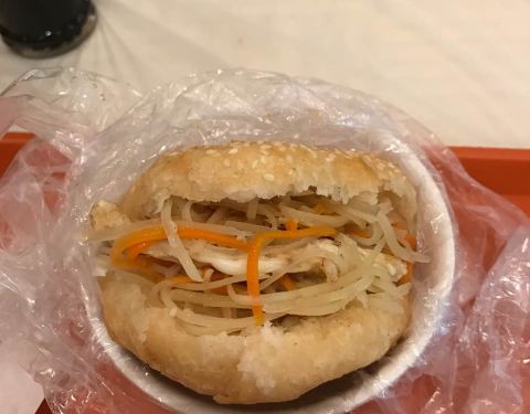 最爱吃的是小米粥和素加馍,小米粥一喝就知道是现熬的,素夹馍里面夹的是土豆丝和胡萝卜丝炒的菜和一个煎蛋