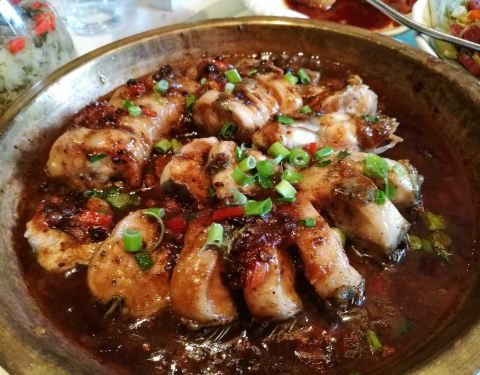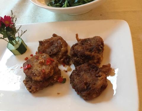 从小吃到大的家常菜馆,最好吃的是炸时蔬,外面脆脆的,里面有虾和时蔬。中午去的时候,不知道是过点了还是怎么样,已经开始是旅行团的团餐。我们点了杏鲍菇牛肉粒,和炸时蔬,两碗米饭,还是原来的味道,性价比也挺高