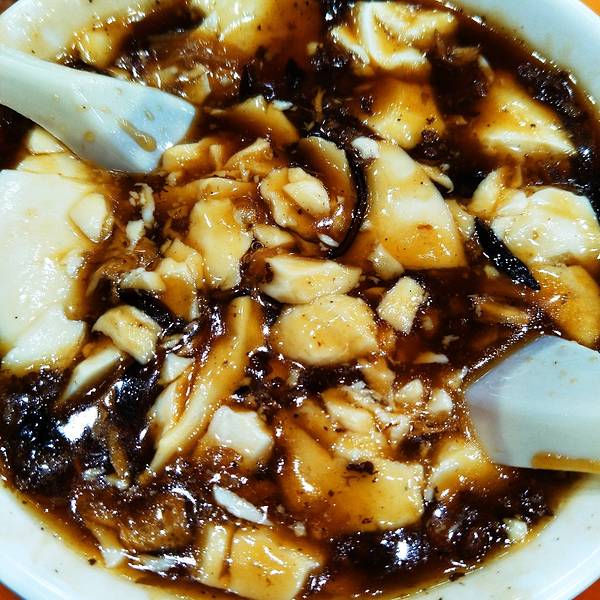 左上角那一碗黑乎乎的就是佳鹅心心念念的豆腐脑,前两次每次都是刚到我俩就没了,在北京一共呆了六天三天都跑过来吃这里的早饭,这种执着还有谁?分量每次都很夯实,一杯原味豆浆,一个糖花卷,一碗豆腐脑,一个...左上角那一碗黑乎乎的就是佳鹅心心念念的豆腐脑,前两次每次都是刚到我俩就没了,在北京一共呆了六天三天都跑过来吃这里的早饭,这种执着还有谁?分量每次都很夯实,一杯原味豆浆,一个糖花卷,一碗豆腐脑,一个糖油饼,心满意足啦。