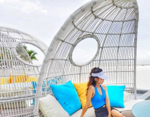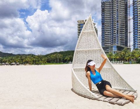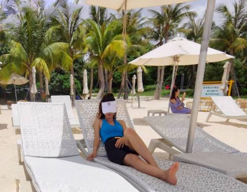 人工沙滩🏖️人少安静,包场独享一片沙滩。碧海蓝天,白色沙滩,热带椰子树,海风习习,藤椅并排。设施还未齐全,自备食物。离市区不远,开车方便。做好防晒,夏天太热,太阳毒辣。