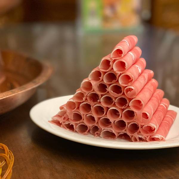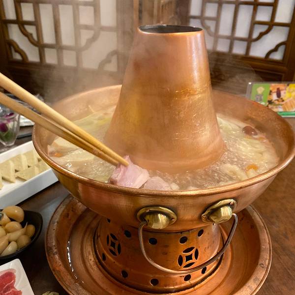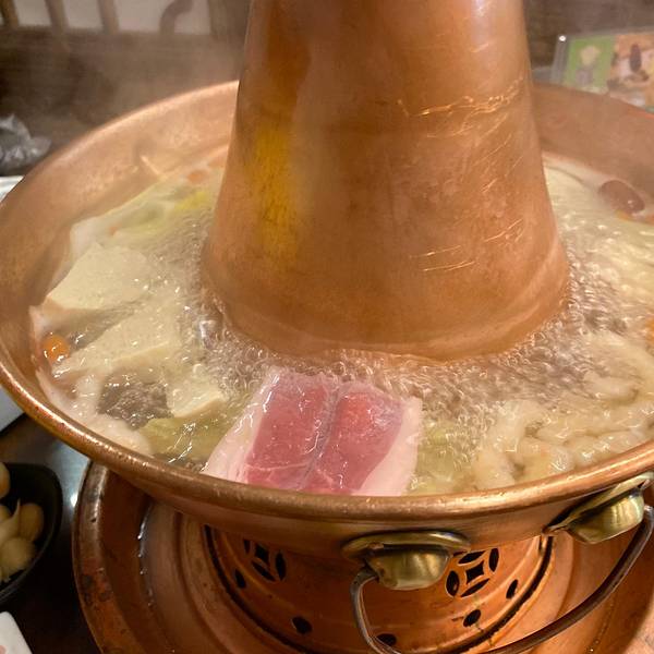 人气太旺的涮肉店,在什刹海边上,三点去排队的,六点不到进去的,都是人。 每桌标配涮锅、白菜、麻酱、冻豆腐和粉丝。 麻酱里默认有香菜、韭菜花等酱,不喜欢的可以单点。涮锅是清水,原汁原味。 肉点了手切鲜羊肉和鲜羊上脑,都很新鲜,羊味十足,很鲜嫩。 鲜百叶一航,有点老。 四色面不错,筋道很入味。 炸烧饼,里面没馅的,蛮香的。 整体还行,排队有点不值。